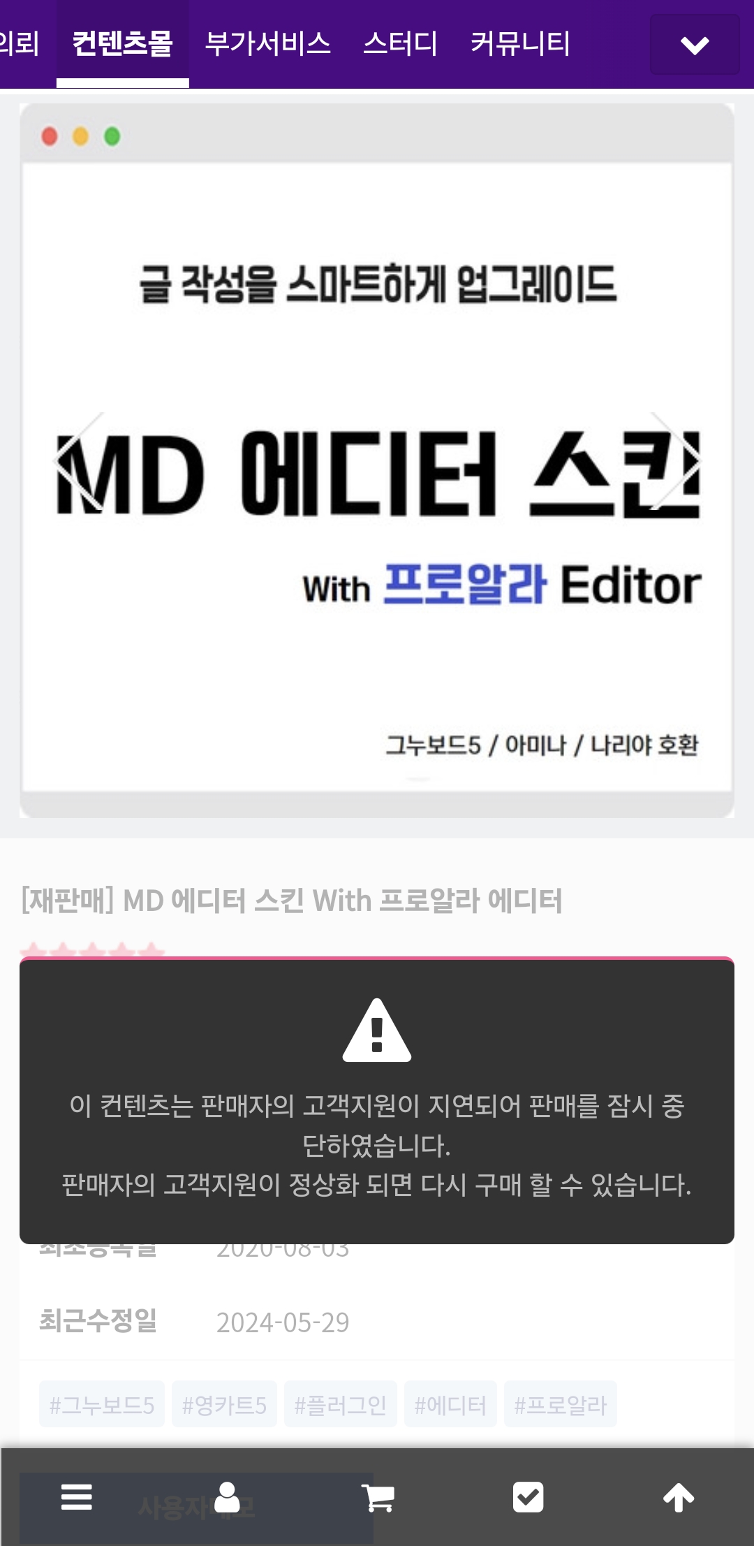 컨텐츠몰서 판매중인 프로알라 에디터 판매중단 정보