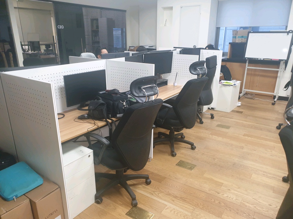 광고회사이며, 타지역 사무실 이전으로 10자리이상 여유공간이 있습니다.