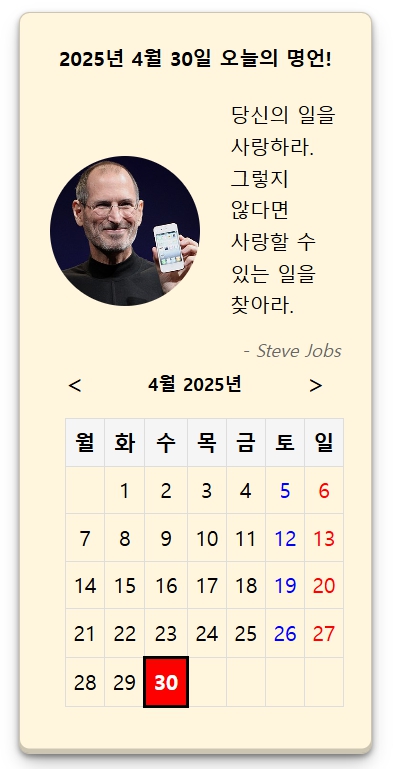 달력에 버그가 있어 수정하면서 오늘의 명언에 명언자 사진을 넣었습니다.