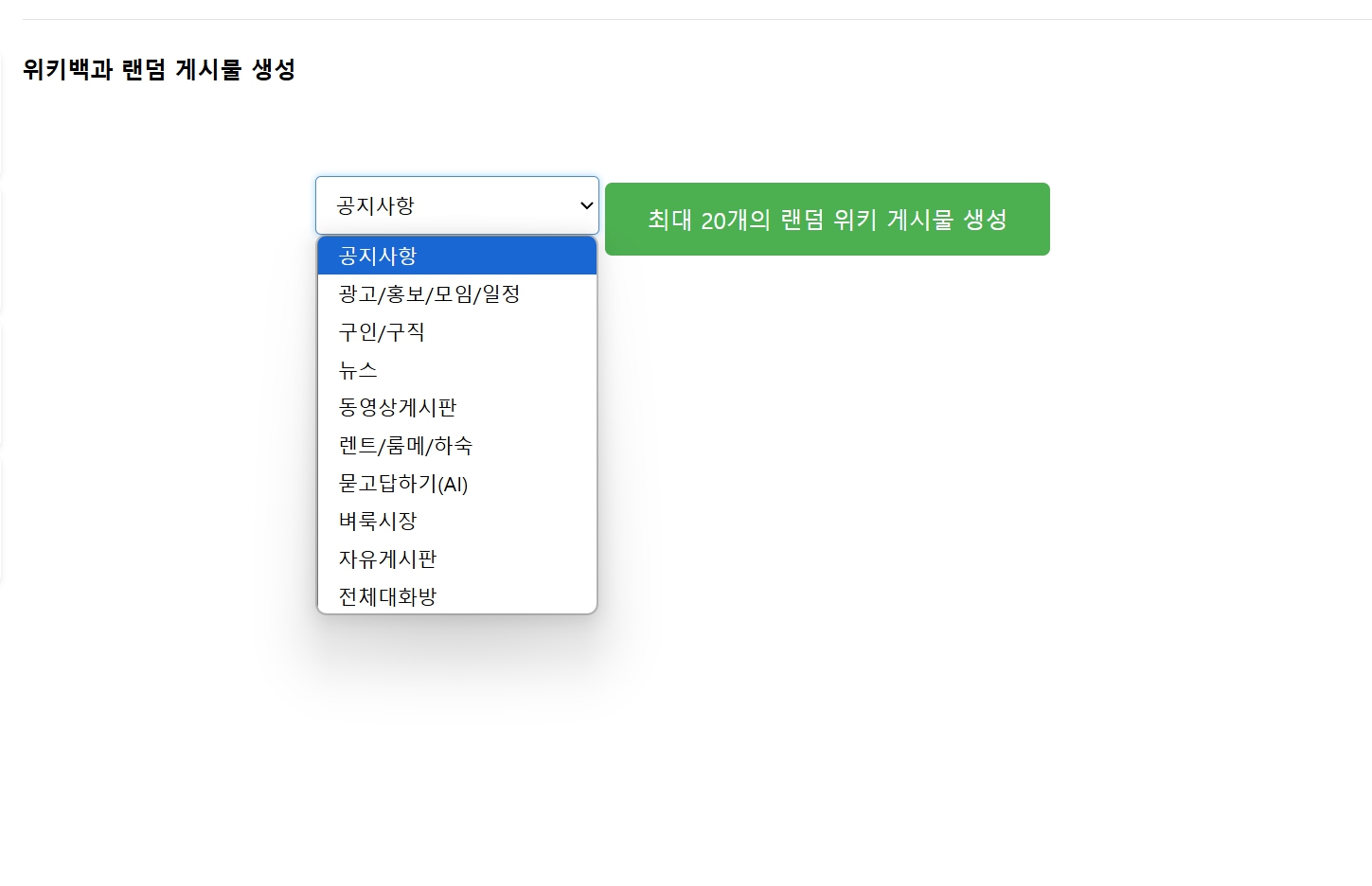 말 그대로 한국 wiki api (키없는 무료) 를 이용한 랜덤으로 게시글 작성하게 합니다.