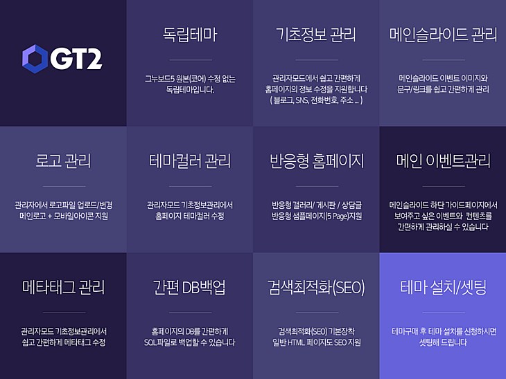 메인슬라이드관리, 로고관리, 메타태그관리, 테마컬러 ... 등을 지원합니다.