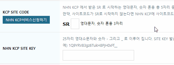 5. SITE CODE 중 SR 을 제외한 나머지 3자리를 쇼핑몰설정 > 결제설정 > NHN KCP SITE CODE 에 복사,